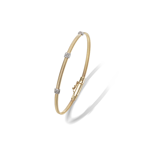 18kt Yellow Gold slender Bracelet with three diamond pavés