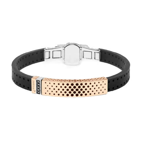 Rose and White Gold Bracelet with Stainless steel, Black Rubber and Black Diamonds