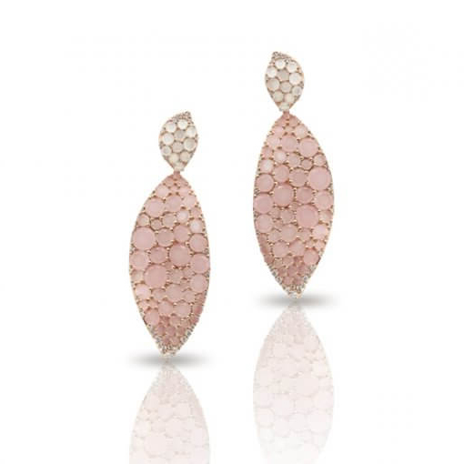 Rose gold earrings with pink chalcedony, moonstone and diamonds