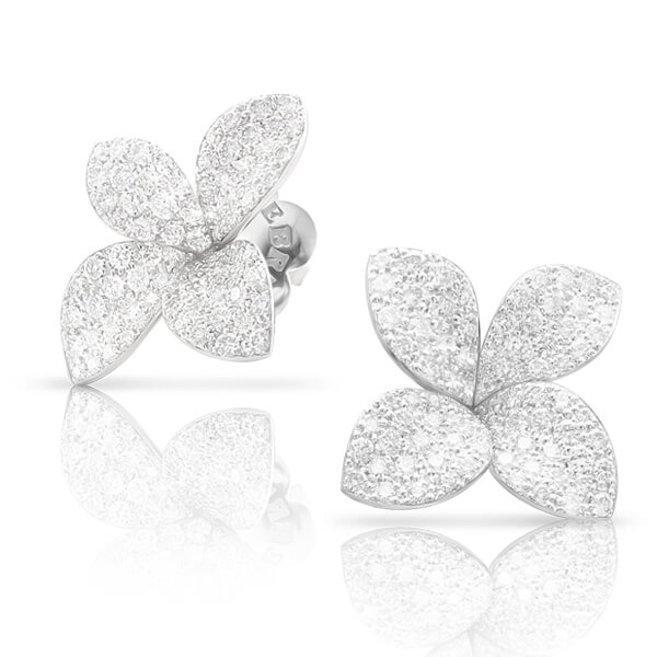 Earrings in 18k White Gold with Diamonds, Medium Flower
