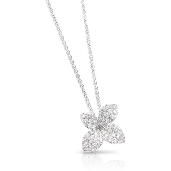 Necklace in 18k White Gold with Diamonds, Small Flower