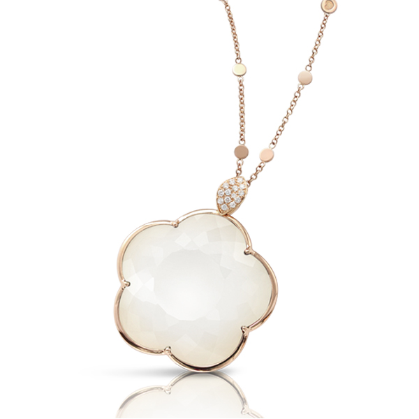 Rose gold necklace with white Agate & mother of pearl and diamonds